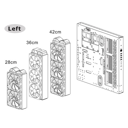 | Fan Desteği | Sol taraf: 3 x 120mm 3 x 140mm |