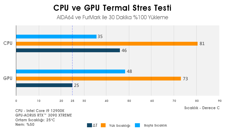 Termal testler sırasında termal görüntüler alındı. Aşağıdaki fotoğraflarda da görebileceğiniz gibi, bu kasayı tasarlarken soğuk hava girişlerinin ve sıcak hava çıkışlarının iyi gelişmiş olmasını sağlayarak iç sıcaklığın her zaman düşük ve sabit kalmasını sağladık.