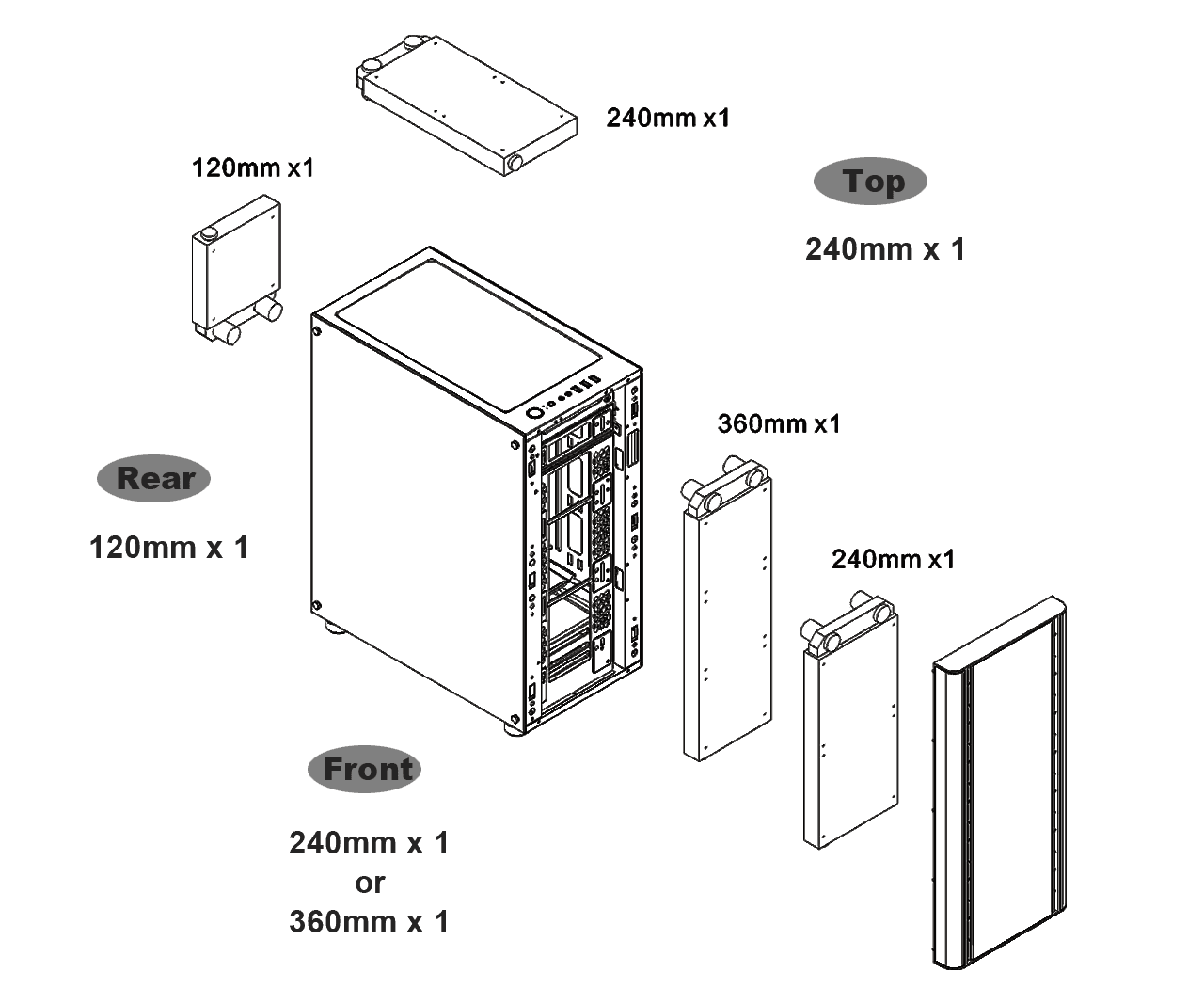 | 120mm | 240mm | 360mm | 140mm | 280mm | |